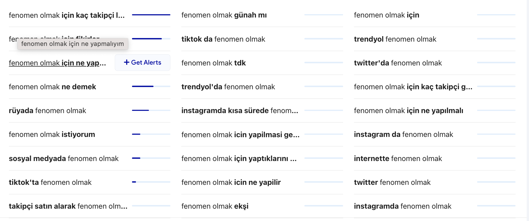 İnsanların bu konuyla alakalı aradığı diğer başlıklara baktığımızda “fenomen olmak için kaç takipçi lazım”, “fenomen olmak için fikirler”, “fenomen olmak için ne yapmalıyım” gibi arama metinleri ilk sıralarda yer almış. “Fenomen olmak günah mı” başlığıyla arama yapanlar da olmuş, merak ettim bende aradım, “fenomen olmak caiz midir”, “sosyal medya’dan kazanılan para helal midir” gibi başlıklar uzayıp gitmiş.